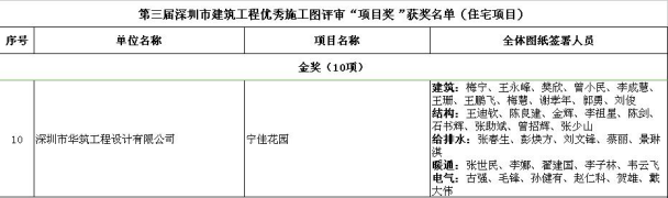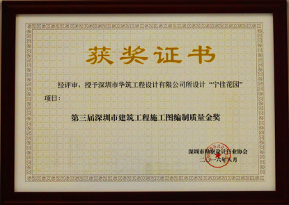 寧佳花園項目喜獲第三屆深圳市建筑工程施工圖編制質(zhì)量金獎發(fā)布時間: