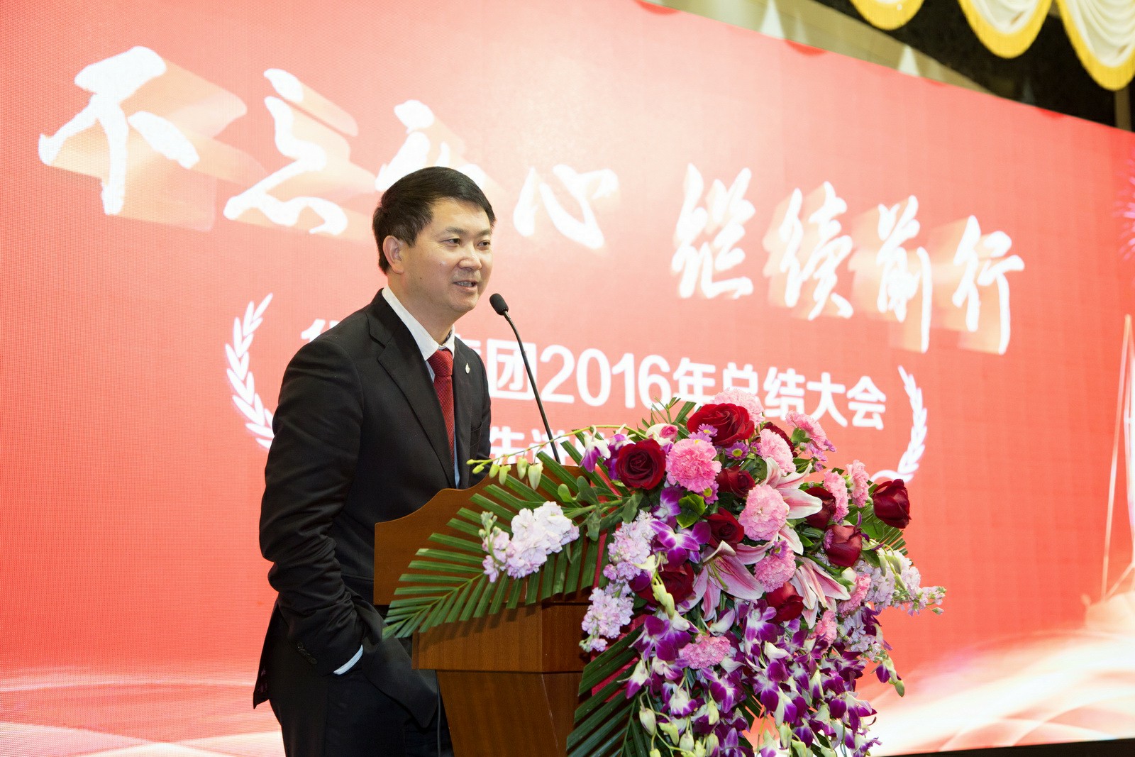 會上,集團董事局總裁余道群做華策集團2016年全年工作總結(jié),并客觀指出過去一年中獲得的成績和存在的不足。他在會議上指出,2016年是華策極不平凡的一年。這一年,集團在以楊峰主席為核心的集團董事局的領(lǐng)導(dǎo)下,全面貫徹落實2016年2月文德草堂董事局會議精神,經(jīng)過一系列的運作和發(fā)展,實現(xiàn)土地儲備400萬平方米,全年為國家創(chuàng)造稅源不少于20億,集團運營資產(chǎn)規(guī)模已從過去的幾十億量級躍升為千億量級。2016年,地產(chǎn)板塊實現(xiàn)開發(fā)面積60萬平方米,創(chuàng)造總銷售值80億元,當(dāng)年實際回籠36億元,標(biāo)志著華策集團已挺進全國房地產(chǎn)200強行列。余總還提到,在地產(chǎn)板塊取得輝煌業(yè)績的同時,集團高科技板塊也取得了長足的發(fā)展,在應(yīng)用領(lǐng)域取得重要突破。在地產(chǎn)、科技“一體兩翼”飛速發(fā)展的同時,集團注資金融領(lǐng)域,在2016年底成功入股某央企金融機構(gòu),為華策百年基業(yè)建立了一個穩(wěn)固的三角形支架,實現(xiàn)了產(chǎn)融結(jié)合。