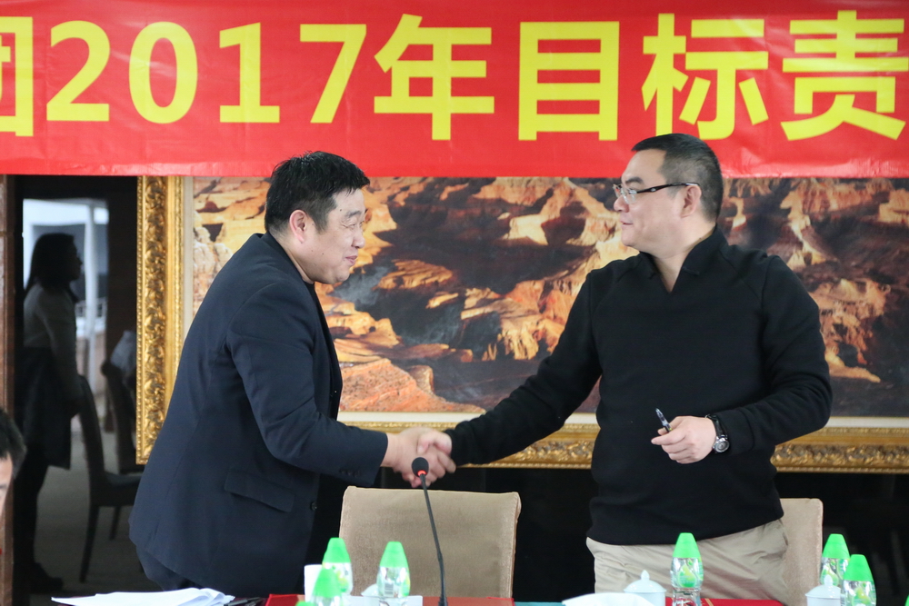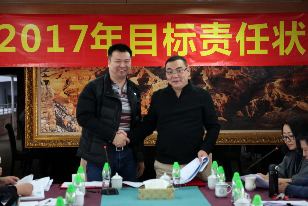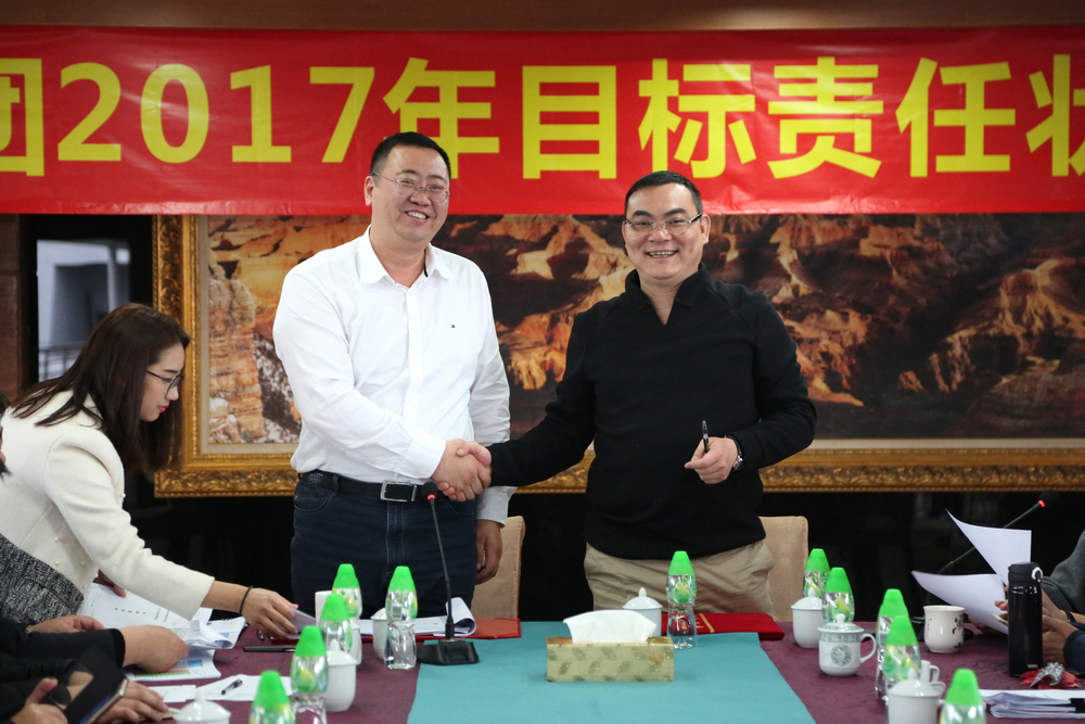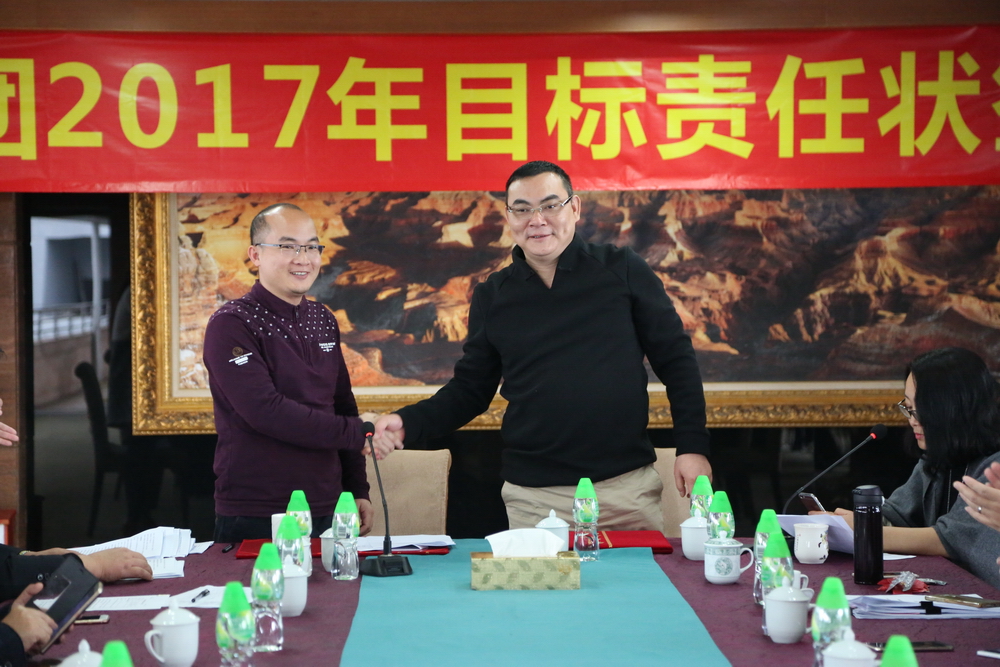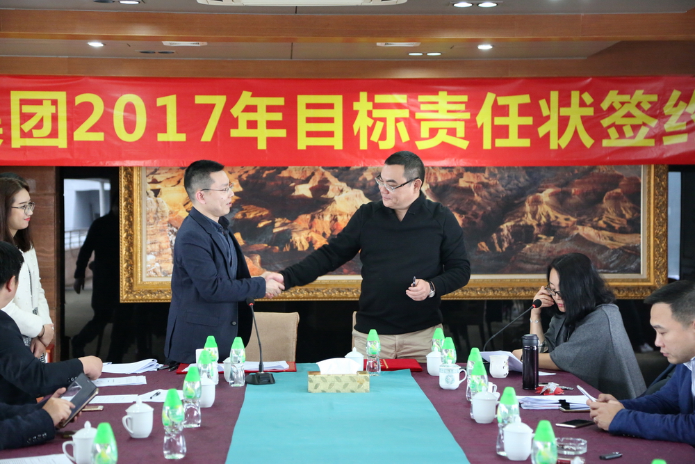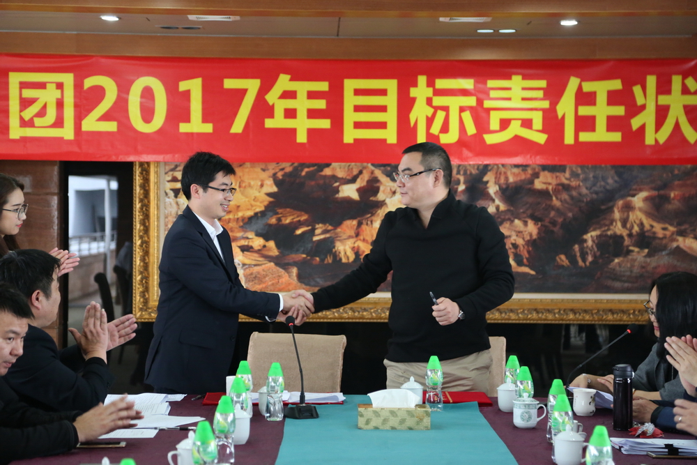 簽約完畢后,總裁余道群強(qiáng)調(diào),2017年市場壞境比較去年更加惡劣,每一個華策人要從集團(tuán)的生存和發(fā)展角度思考問題,不要奢望市場給我們“開小灶”。完成目標(biāo)責(zé)任狀有難度,但也是可實(shí)現(xiàn)的,每位負(fù)責(zé)人及各位董事都有考核壓力。希望大家充分理解,不要盲目放大困難,辦法總比困難多,只要把潛力發(fā)揮出來,是可以實(shí)現(xiàn)40億元的銷售目標(biāo)。我們要把壓力和動力層層傳遞給每個員工,共同分擔(dān),抱成一團(tuán),眾志成城,擼起袖子加油干!