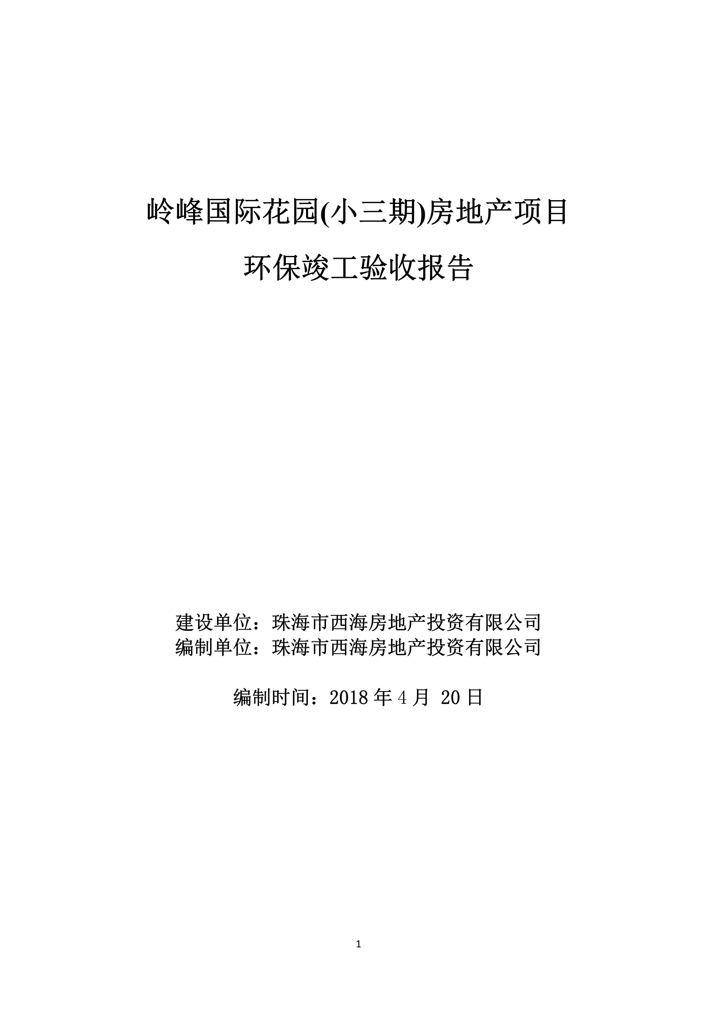 珠海市華策集團有限公司(以下簡稱“華策集團”)下屬子公司—珠海市西海房地產投資有限公司開發的嶺峰國際花園(小三期)房地產項目現已竣工,現將嶺峰國際花園(小三期)項目環保竣工驗收報告內容在華策集團官網進行公示。
