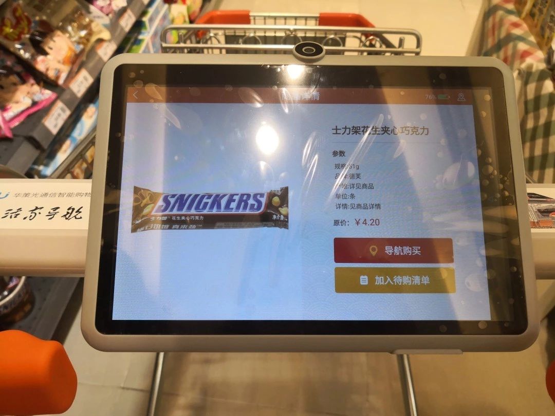 由華策光通信研發(fā)的華策智能購物車,采用厘米級定位核心技術(shù),定位精度達到0.3米以內(nèi),其自主研發(fā)的白光通信技術(shù),擁有眾多國內(nèi)外核心專利,解決了室內(nèi)精準(zhǔn)定位這一世界性的難題。獨有的一體式整車設(shè)計,360度定位旋轉(zhuǎn)跟隨,搭配12寸超大高清分辨率顯示屏,續(xù)航12小時以上的大容量電池。對比傳統(tǒng)的超市購物車形象,華麗的設(shè)置帶給購物全新的體驗。