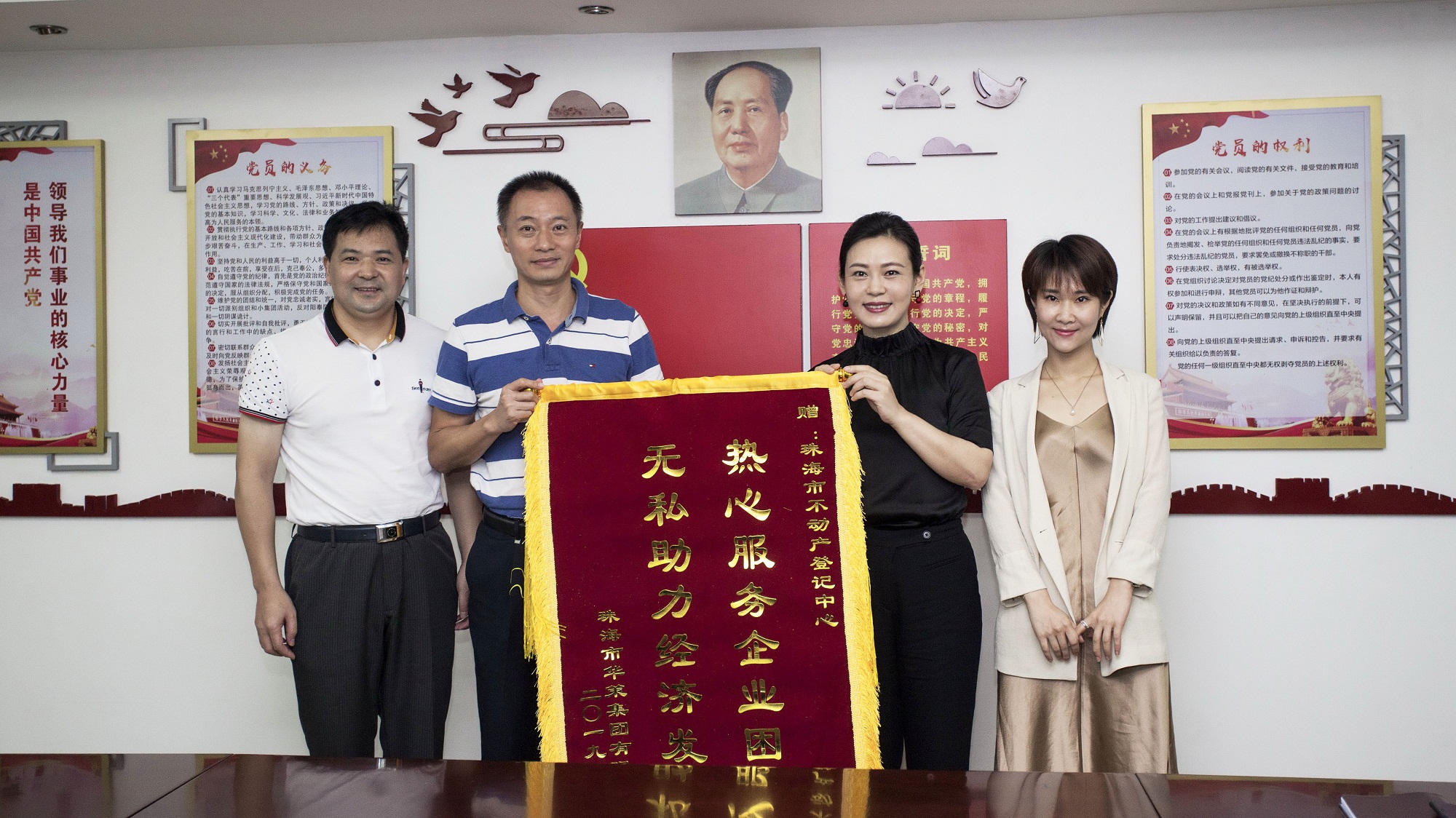 “感謝市不動產登記中心長期以來為華策集團排憂解難,盡職盡責地提供優質服務。”5月17日上午,華策集團董事行政總監程因,資金計劃二部總經理陳小燕,文宣部主任陳曉芝等為登記中心送去一面印有“熱心服務企業困難,無私助力經濟發展”的錦旗。珠海市不動產登記中心副主任張川、曾德軍,受理科負責人盧建芝,辦公室負責人陳向陽等代表登記中心接收錦旗。