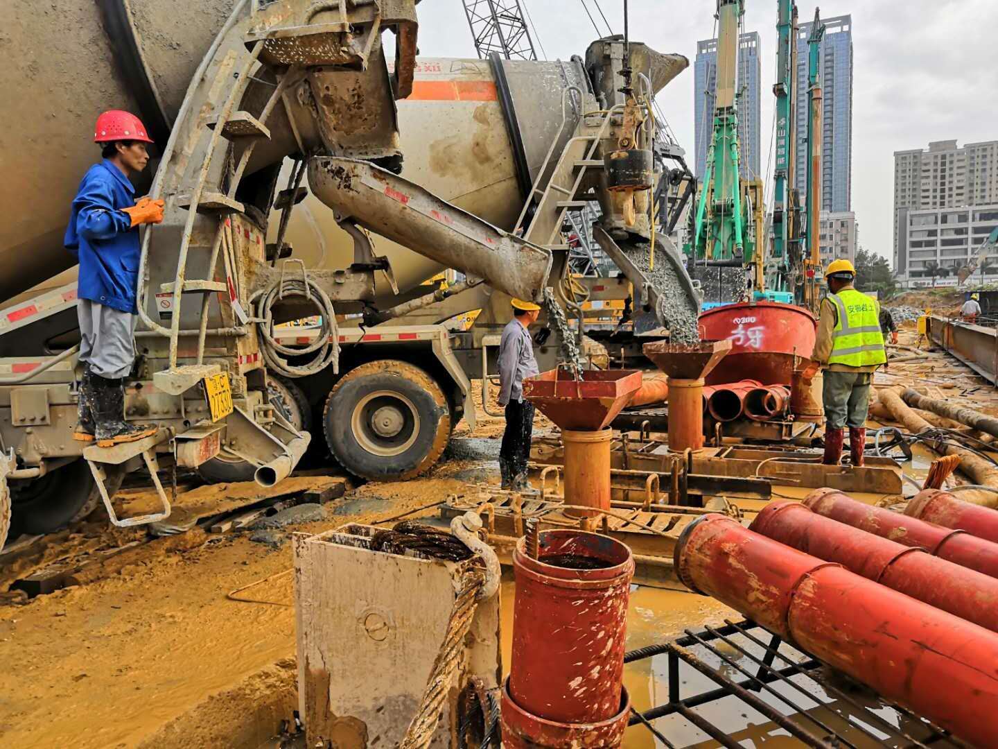 華策·海韻星灣項(xiàng)目地下連續(xù)墻混凝土澆筑現(xiàn)場(chǎng)