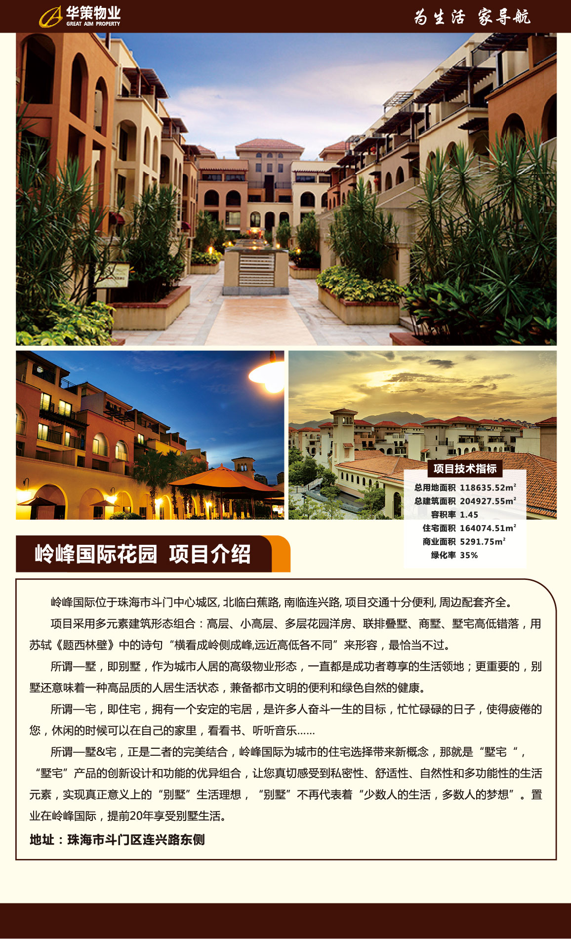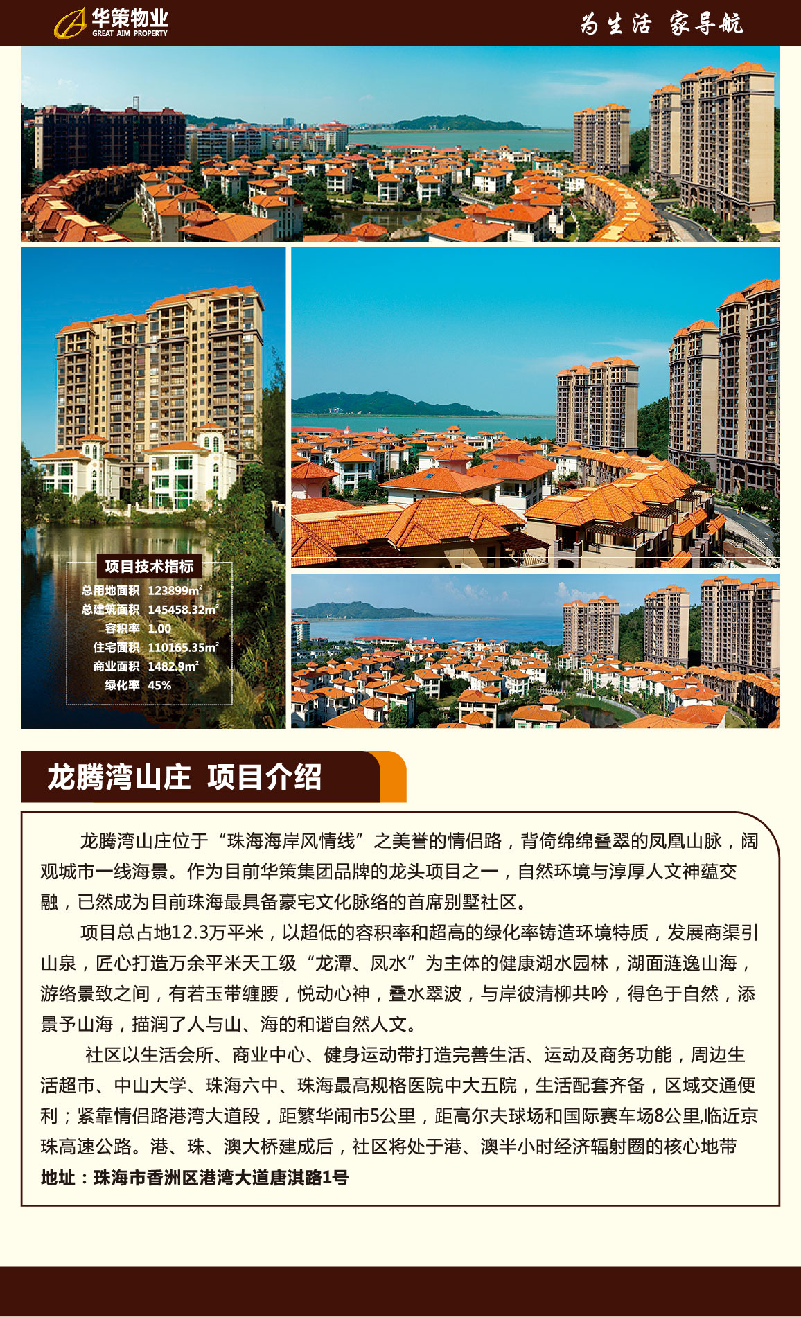 目前,華策物業管理的項目有珠?;浐H花園、華策大廈、龍騰灣山莊、南灣國際、嶺峰國際、云浮·星科國際公館等,管理類型涵蓋高檔住宅小區、別墅、辦公商業樓宇等。其所管轄的各類物業先后榮獲多項省、市級以上的榮譽稱號。其中,粵海國際花園榮獲“全國物業管理示范單位”殊榮,南灣國際榮獲“珠海市物業管理優秀住宅小區”稱號。