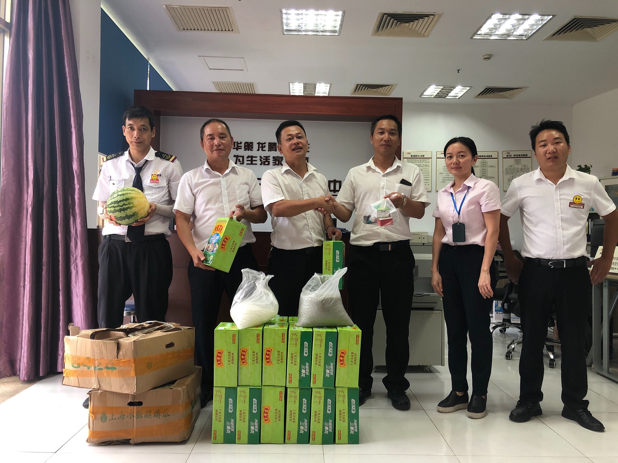 同時,從7月11日開始,華策集團旗下物業公司也啟動了“送清涼”活動。物業公司工會主席解牧組織工會干部,到各項目一線給華策物業職工送去防暑降溫的藥品、西瓜、綠豆和清涼飲品,并叮囑職工在夏季高溫時段注意防暑降溫,切實加強勞動保護,合理安排作業時間。