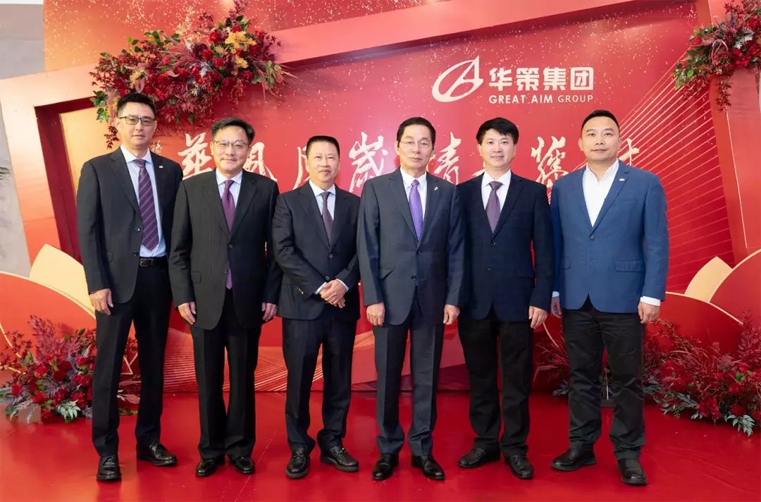 董事局主席楊峰(右三)、董事總裁余道群(左三)、董事常務(wù)副總裁梅合理(左二)、董事副總裁姚政(左一)、董事財務(wù)總監(jiān)楊家瓊(右二)、董事副總裁陳曉斌(右一)
