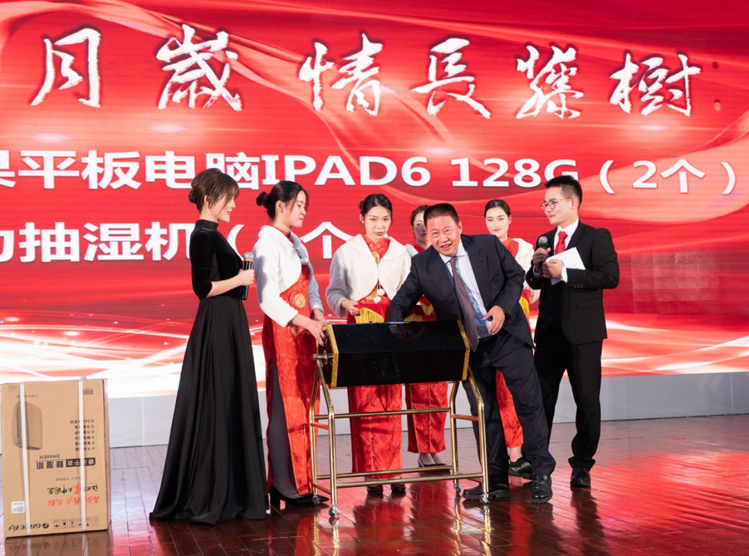 辛勤勞作鑄輝煌,發(fā)展碩果眾人享。晚宴期間,一輪接一輪激動人心的抽獎,把新年的幸運傳遞給現(xiàn)場的每一個人。本次年會獎品包括現(xiàn)金特等獎、華為5G手機、精美筆記本電腦、蘋果平板電腦、藍牙耳機、抽濕機、音響等等113個獎項,集團董事局領(lǐng)導(dǎo)分別上臺抽獎,讓人驚喜不斷,現(xiàn)場高潮迭起,尖叫聲響徹整個會場。