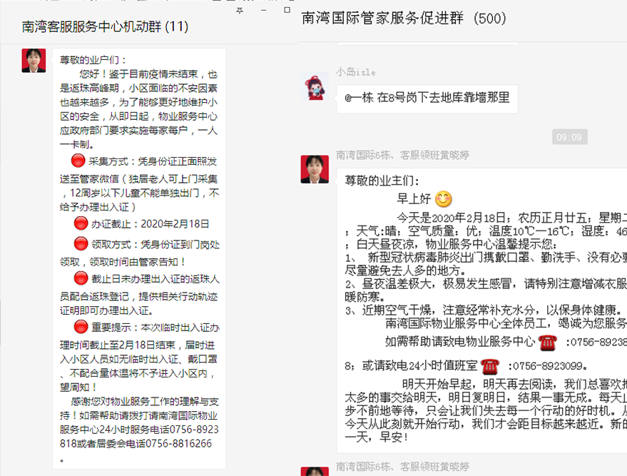 ▲ 華策·南灣國際物業管家線上與各業主保持實時溝通