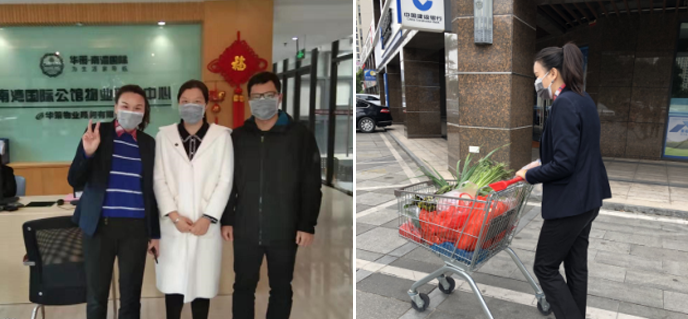 疫情初期正是年關,粵海國際花園服務中心秩序主管秦艷龍舍小家,顧大家。帶領項目秩序隊員堅守崗位奔波一線。第一時間采購疫情必需物資,啟動應急預案,小區實行封閉式管理,所有外來人員,車輛不可進入小區,共享單車在小區外統一擺放。小區所有進出人員測體溫,并積極配合業委會,居委會,派出所在園區宣傳,上門走訪檢查,對不配合的業主進行解釋溝通。粵海國際花園服務中心還給有困難的業主送快遞,外出采購物資親自送到業主家門口。