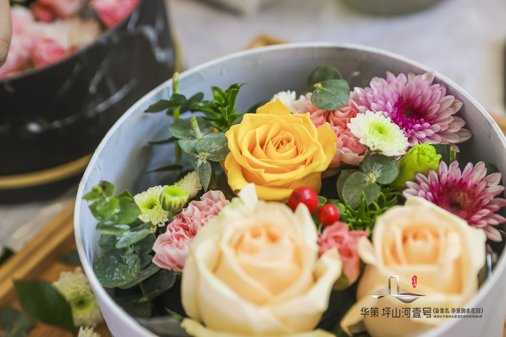 現場精彩紛呈,驚喜不斷。營銷中心設計感十足,每個細節都體現著項目的用心之至。入口處精心布置了豐富的金屬花箱 Flower Box、定制金屬框以及繽紛的鮮花束;移步而進,備有精美茶歇供現場來賓品嘗,加之極具儀式感的創意簽到,為項目人文美學的盛啟增添一抹色彩。鮮花禮盒定制的尊貴體驗、專業花藝師的現場教學,豎琴優雅的表演,為來賓營造活動氛圍,獻上一場視聽美學盛宴,感受華策集團的世界級審美標準和匠心品質。