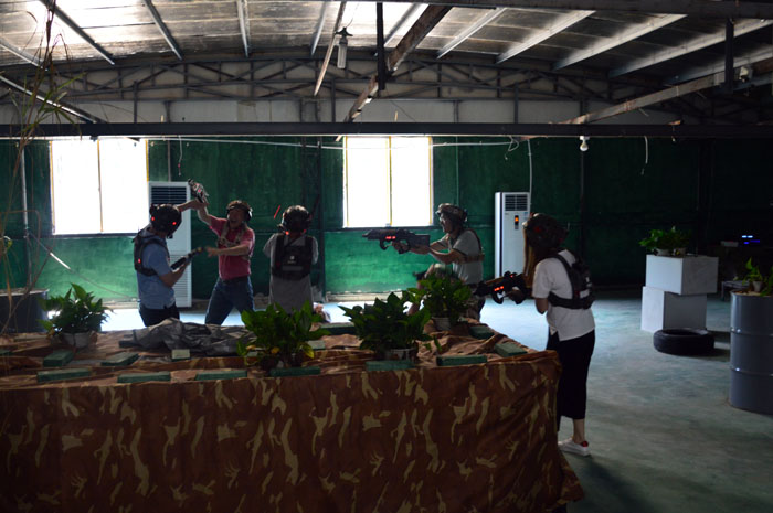 在薛紅副總監的動員講話后,拓展活動正式拉開帷幕。本次活動主題為“揚華策風采,展團隊雄風”,內容包括智力取珠、競技攀巖、星球大戰和室內真人野戰等項目。隊員們隨機組成4個活力團隊,在推選團隊核心、產生隊名和口號的過程中迅速形成團隊意識,以學習、平等、合作的心態投入到團隊活動中。