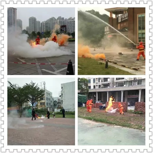 華策南灣國(guó)際公館、嶺峰國(guó)際花園、粵海國(guó)際花園、龍騰灣山莊四個(gè)項(xiàng)目在項(xiàng)目經(jīng)理的組織下,義務(wù)消防隊(duì)員接到火災(zāi)指令后,迅速集合,在最短的時(shí)間內(nèi)趕到火災(zāi)現(xiàn)場(chǎng),熟練的將消防水帶連接消防栓滅火、疏散、救援。隨后,隊(duì)長(zhǎng)指導(dǎo)消防隊(duì)員,演練用干粉滅火器進(jìn)行現(xiàn)場(chǎng)滅火。